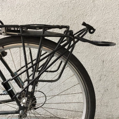 Vous pouvez utiliser cette fixation avec un porte bagages installé à l’arrière du vélo sans que la fixation ne soit gênée par le support à bagage.
