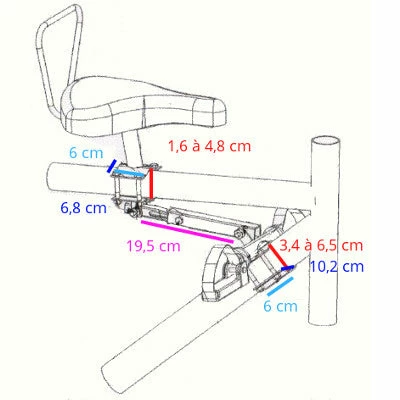 Ce siège selle se monte sur la barre horizontale du cadre de vélo. Il est ainsi adapté pour le vélo dit « pour homme », c’est-à-dire avec le top tube droit et horizontal, de 16 à 48 mm de diamètre. Ce dispositif convient aux cadres ayant un tube inférieur rond et large dont le diamètre est compris entre 34 et 65 mm. Consultez la notice d’installation de la selle sur cadre pour plus d’informations.