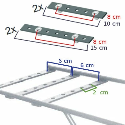 Les dimensions du produit sont : 40,5 cm de long, 14,5 cm de large, des tubes de 7 mm de diamètre. Voir la photo 3 pour des mesures plus complètes. L’extension pèse 900 grammes et supporte un poids allant jusqu’à 5 kilos.