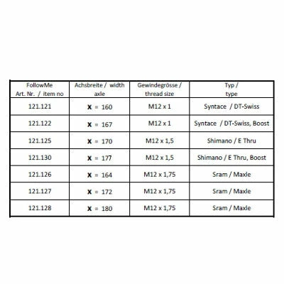 L’axe de diamètre M12 est proposé en 3 tailles de filetage – M12 x 1 – M12 x 1.5 – M12 x 1.75 mm – et pour 3 types de moyeu selon la longueur choisie.