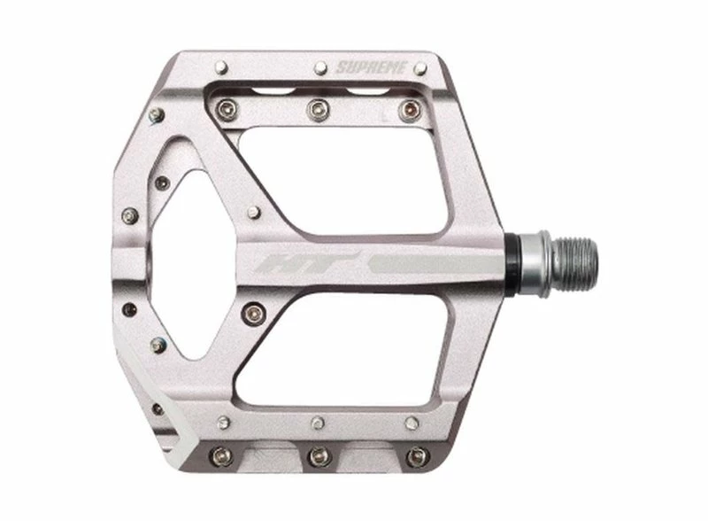 Designed to meet the needs of Brett Rheeder and Martin Soderstrom. The Supreme pedal features a sealed bearing system, a CNC machined chromoly spindle, and 10 replaceable pins per side. Platform size: 100 x 100 x 16.6mm. Weight: 368 g