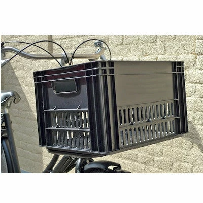 Cette caisse panier en plastique est parfaitement adapté pour faire ses courses à vélo ou transporter ses affaires à vélo. Inspirée des caisses utilisées pour le transport des bouteilles de lait, elle est solide et offre une capacité de 40 litres et 43,5 x 35 x 27 cm de dimension. Des espaces de portage sur les côtés permettent le transport de la cagette à pied.