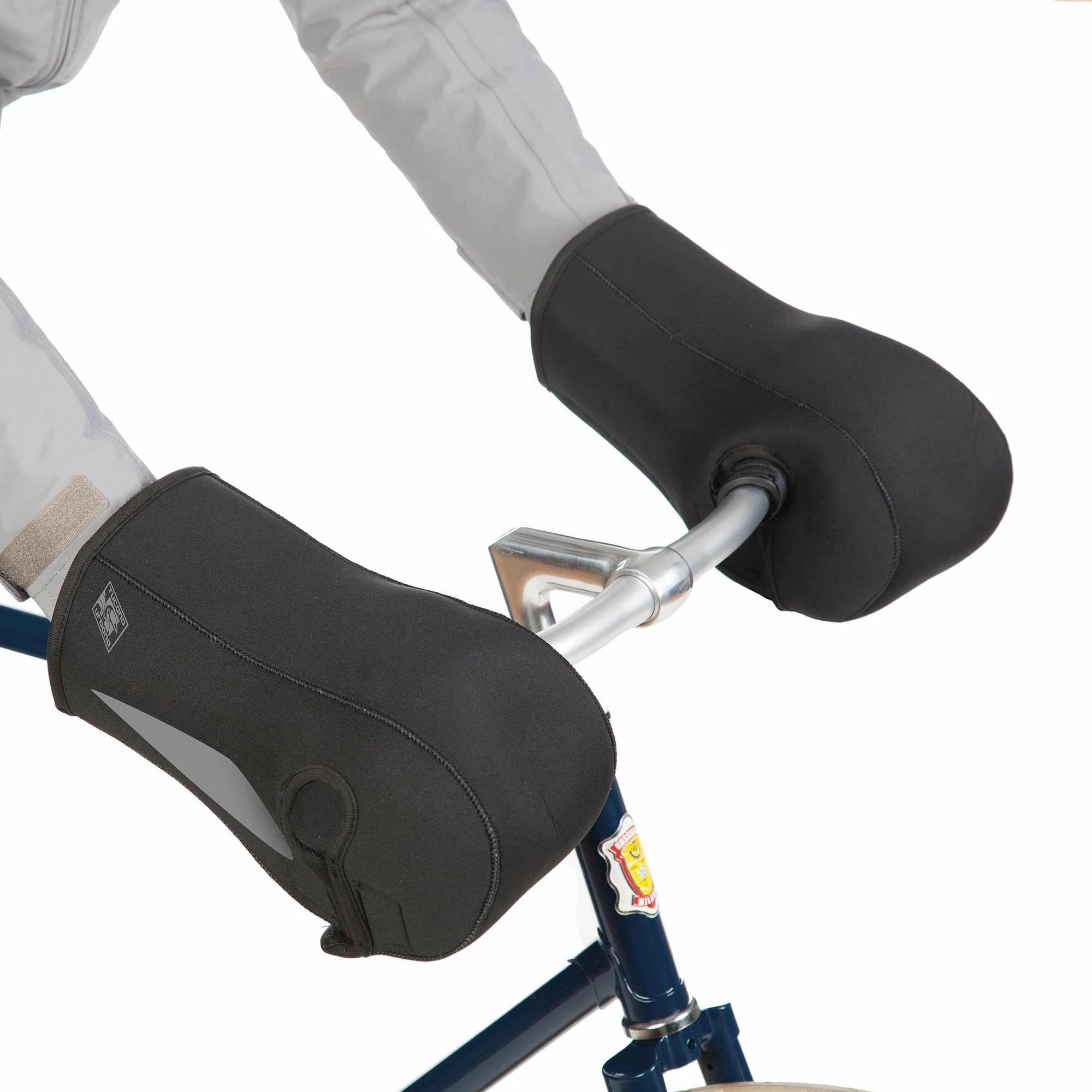 Les mains du cycliste sont ainsi parfaitement à l’abri durant le trajet et le cycliste peut continuer à rouler confortablement malgré les aléas de la météo. À noter que des éléments réfléchissants sont présents sur les côtés des manchons afin d’assurer une meilleure visibilité par faible luminosité ou de nuit.