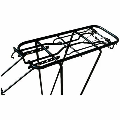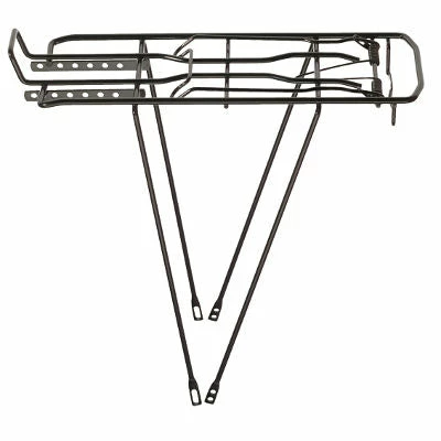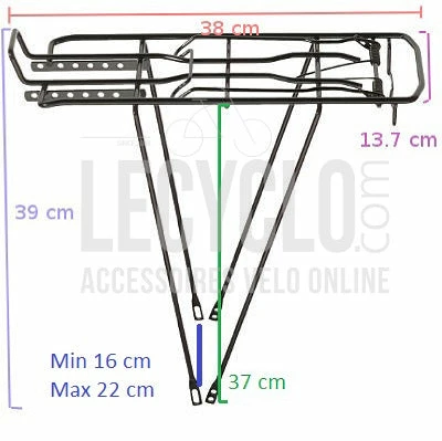 Ce porte bagage arrière pour vélo permet de transporter jusqu’à 25 kg de charge en se fixant solidement sur le cadre du vélo. Il peut être monté sur des vélos de 26 à 28 pouces. Il est fourni avec les tiges de fixation au cadre comme le montre la 2ème image ainsi que toute la visserie.