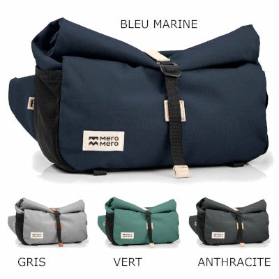 La banane Piha peut accueillir un grand nombre d’affaires. Elle possède un volume de 3 litres lorsqu’elle est fermée compressée ; il peut aller jusqu’à 6 litres lorsque la sacoche est déroulée. La sacoche Mero Mero possède une fermeture par aimant puis par enroulement « roll top » avec crochet qui sert à adapter la taille de votre sacoche au volume d’affaires à emporter. Cette fermeture par le haut a également l’avantage de vous permettre d’accéder facilement à vos affaires lorsque vous êtes à vélo. Ainsi, pas besoin de descendre du vélo, il vous suffit simplement de dérouler la fermeture.