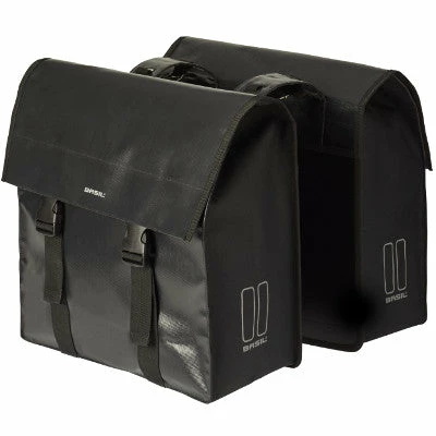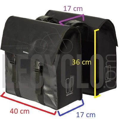 Cette sacoche double Basil permet de transporter les affaires à l’abri des intempéries grâce à son revêtement étanche en tarpaulin et sa grande fermeture couvrante qui empêche la pluie de s’infiltrer. La sacoche vélo double se fixe sur un porte bagages arrière par les deux sangles Universal bridge qui s’adaptent à la plupart des porte bagages vélo, y compris électriques, ayant une largeur de 16,5 cm max.