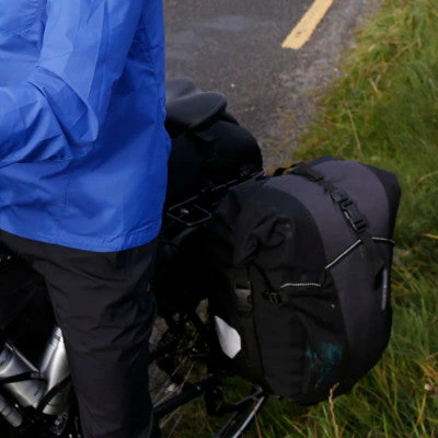 - Pour augmenter la capacité de chargement, il est possible d’installer le sac Rack Pack M de 31L sur la plateforme du porte-bagages, qui se fixe aux sacoches via un système de clips.