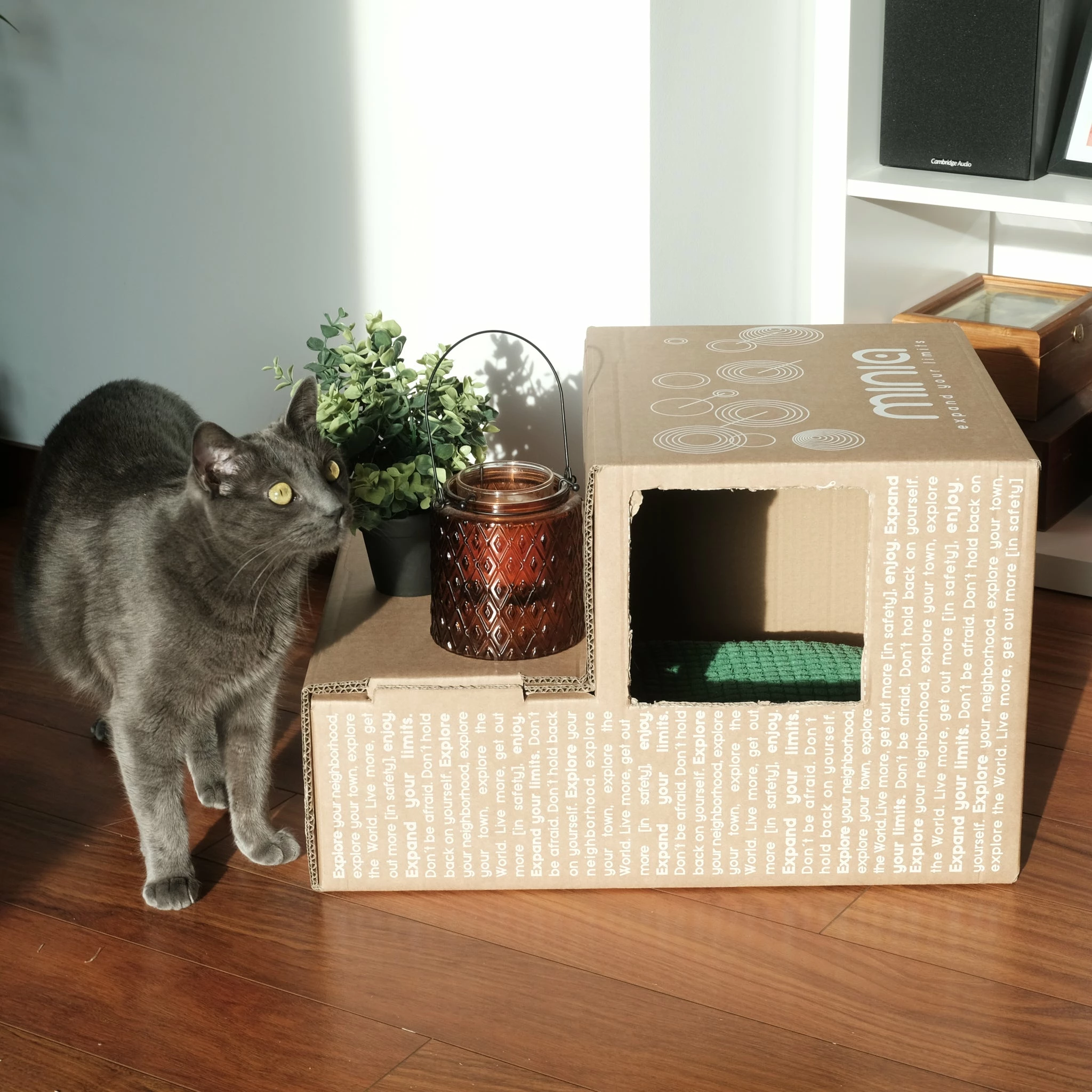 À noter que harnais, repose-pieds et courroies sont ajustables afin de s’adapter et suivre la croissance de l’enfant dans le temps. De plus, le siège se bouge sur trois positions, d’avant en arrière. C’est très pratique pour garder son matériel plusieurs années. Minia se caractérise d’ailleurs comme une marque favorisant le transport de la famille dans une vision écologique. Dans cette continuité, l’emballage principal est fait à partir de matériaux issus de forêts durables. Il est aussi réutilisable en abri pour les animaux (boite à chat, à lapin – voir photo 6). Les autres emballages sont également fabriqués à partir de ressources durables.