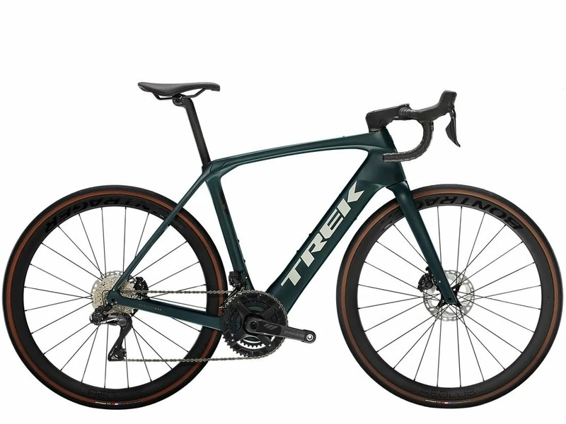 **Domane+ SLR 7 is a category-redefining, high-speed assist carbon e-road bike that doesn’t look, fit, or feel like a standard e-bike. It’s built on an 800 Series OCLV Carbon frame that hides a compact and refined motor to elevate your ride with natural-feeling assist. The motor quietly blends in with the elements, all but disappearing under you on peaceful solo spins and club rides, so you stay more connected to the experience while enjoying extra power for crushing climbs and long, epic adventures. Plus, it offers the ultra fast shifting of a Shimano Ultegra Di2 drivetrain.