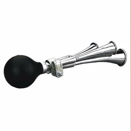 Ce klaxon poire pour vélo est en acier chromé. Il permet de signaler votre présence sur la route lorsque le danger est imminent. Ses 3 trompes émettent 3 différents sons harmonieux et puissants qui rappellent les klaxons des voitures américaines des années 60. Légère, elle pèse 230 grammes.