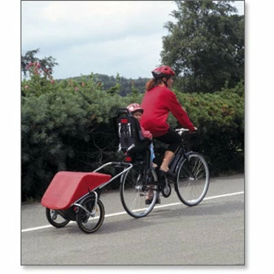 Petite astuce : La remorque caddie peut aussi faire office de siège pour un enfant lorsque vous faites vos courses en magasin.